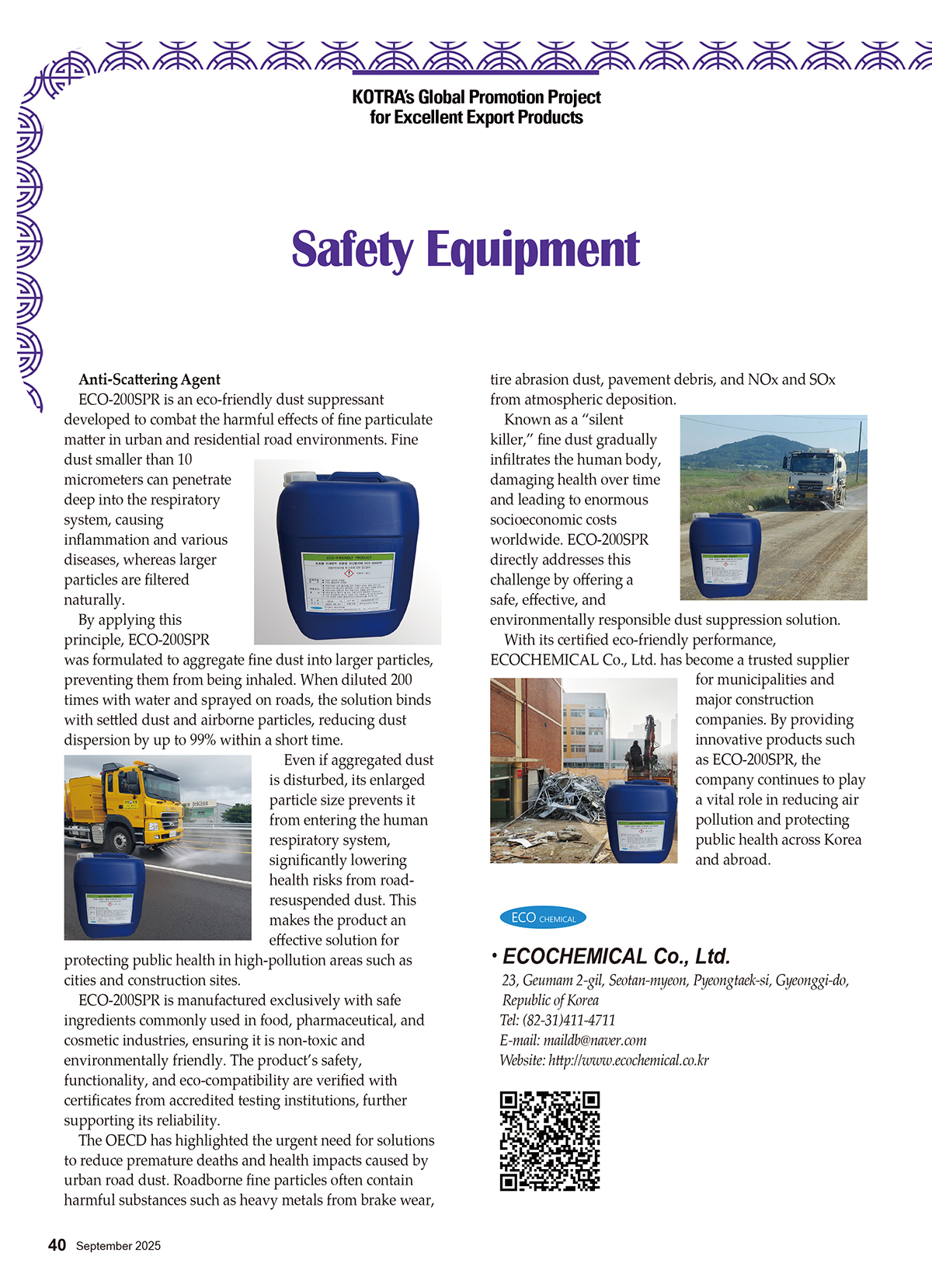 KOTRA ¼öÃâ»óǰ Àü¹®Áö 9¿ùÈ£¿¡ ģȯ°æ ºñ»ê¹æÁöÁ¦ ECO-200SPR Á¦Ç° ¼Ò°³ ±â»ç°¡ °ÔÀçµÇ¾ú½À´Ï´Ù.