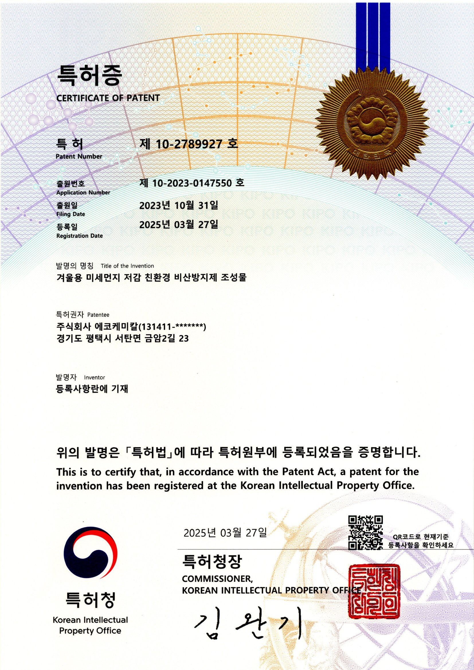 °Ü¿ï¿ë ¹Ì¼¼¸ÕÁö Àú°¨ ģȯ°æ ºñ»ê¹æÁöÁ¦ Á¶¼º¹° ƯÇãÁõ